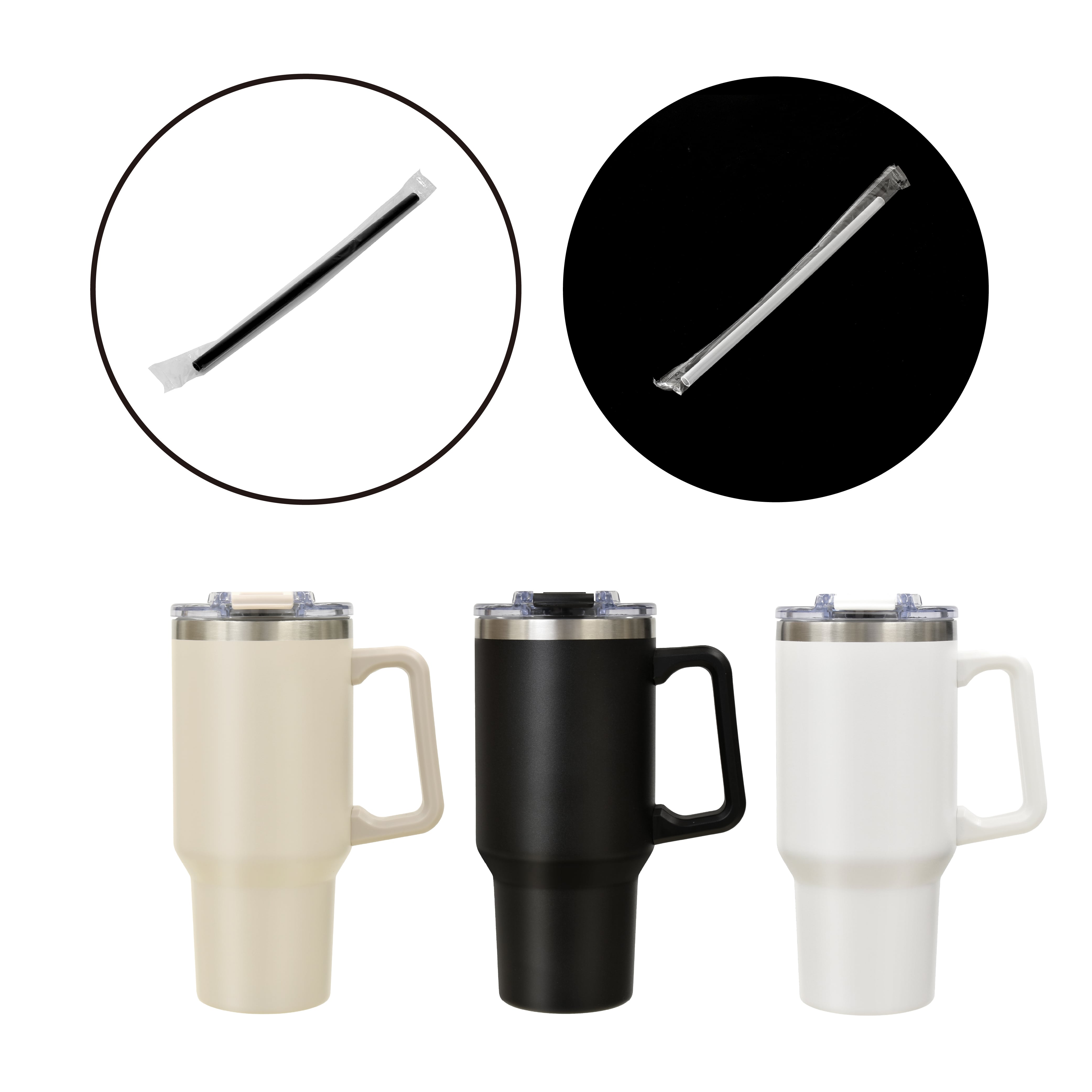 KI-10887GG_K-10887BK_K-10887WH 【ストロー(半透明・ブラック各1本)】取っ手付きタンブラー900ml